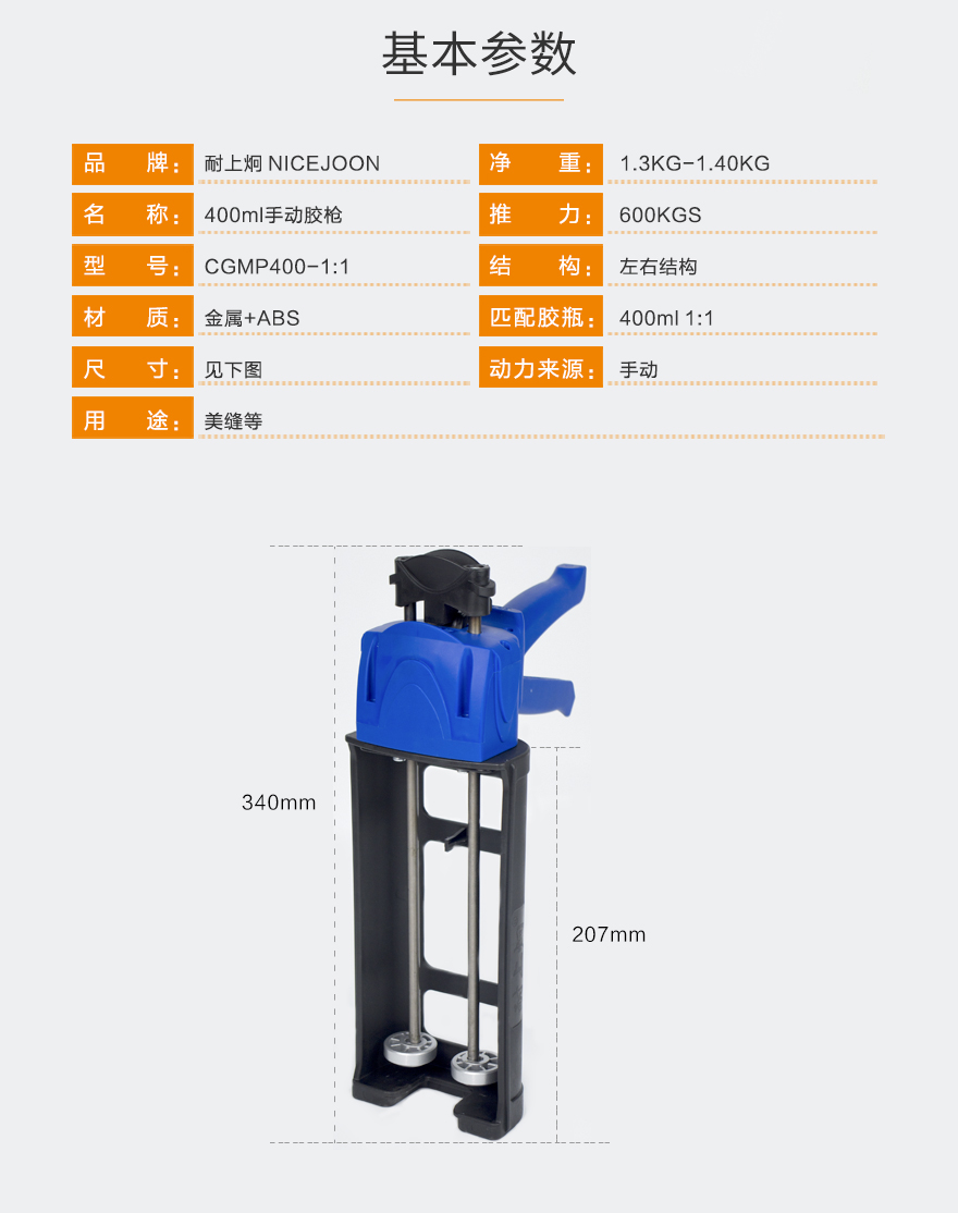产品型号:400ml1:1手动胶枪
