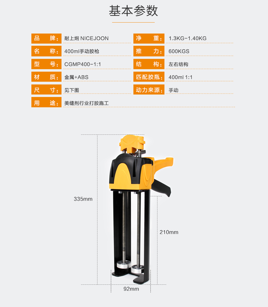 产品型号:400ml1:1手动胶枪