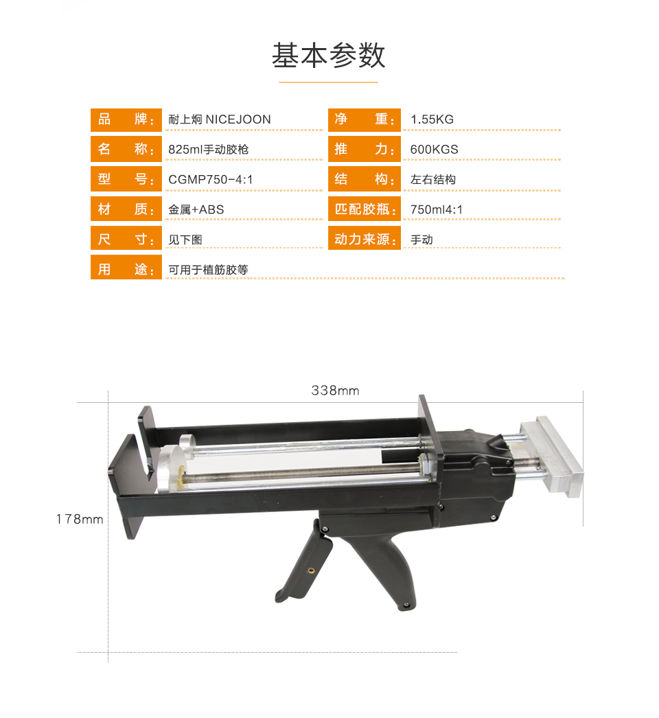 产品型号:750ml4:1手动胶枪
