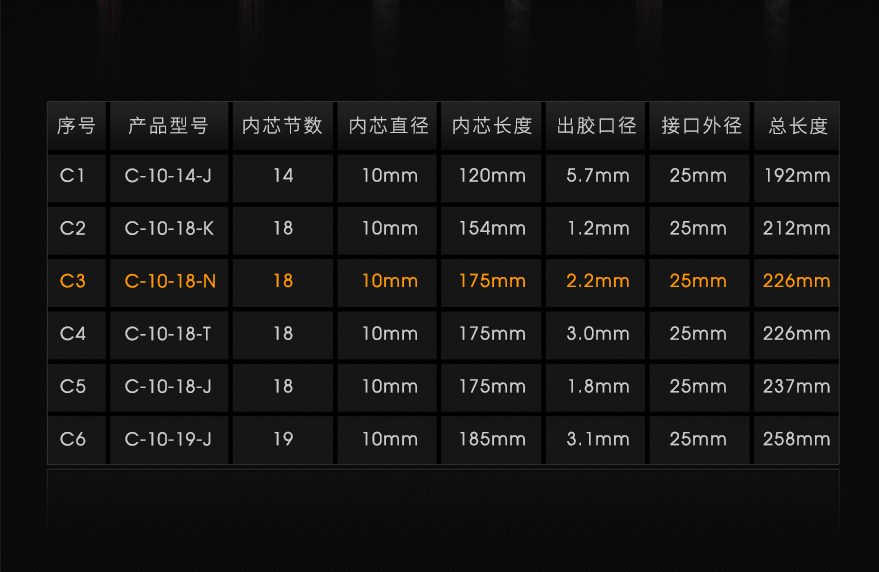 耐上炯双组份C系列10-18台阶口混合管