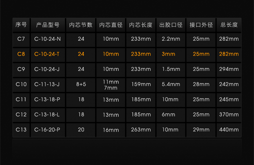 耐上炯双组份C系列11-13锥形口混合管