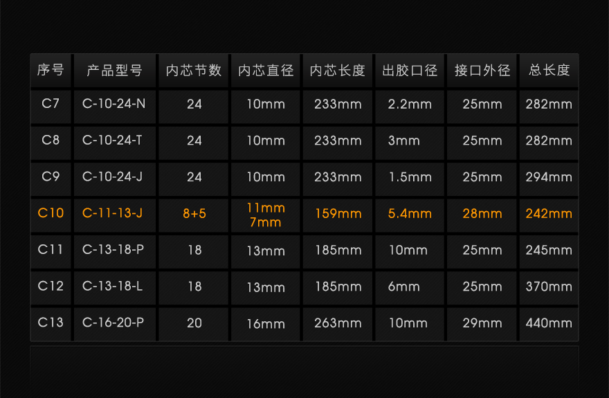 耐上炯双组份C系列11-13锥形口混合管