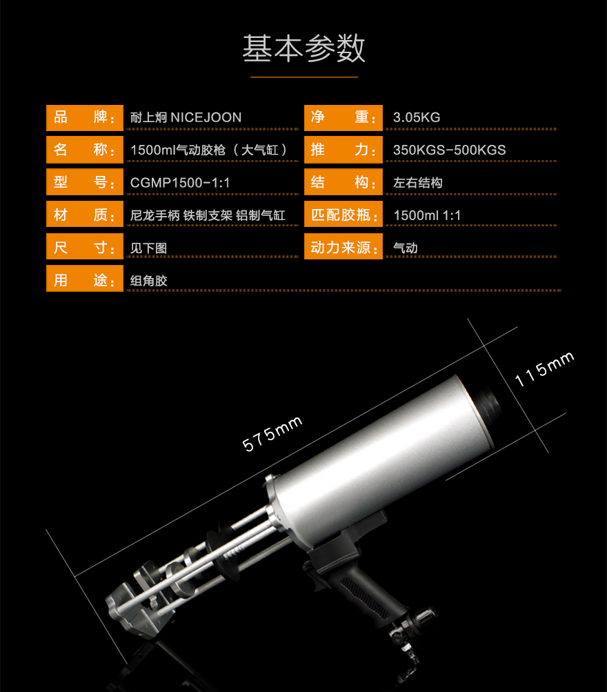 产品材质:尼龙手柄 铁制支架 铝制气缸