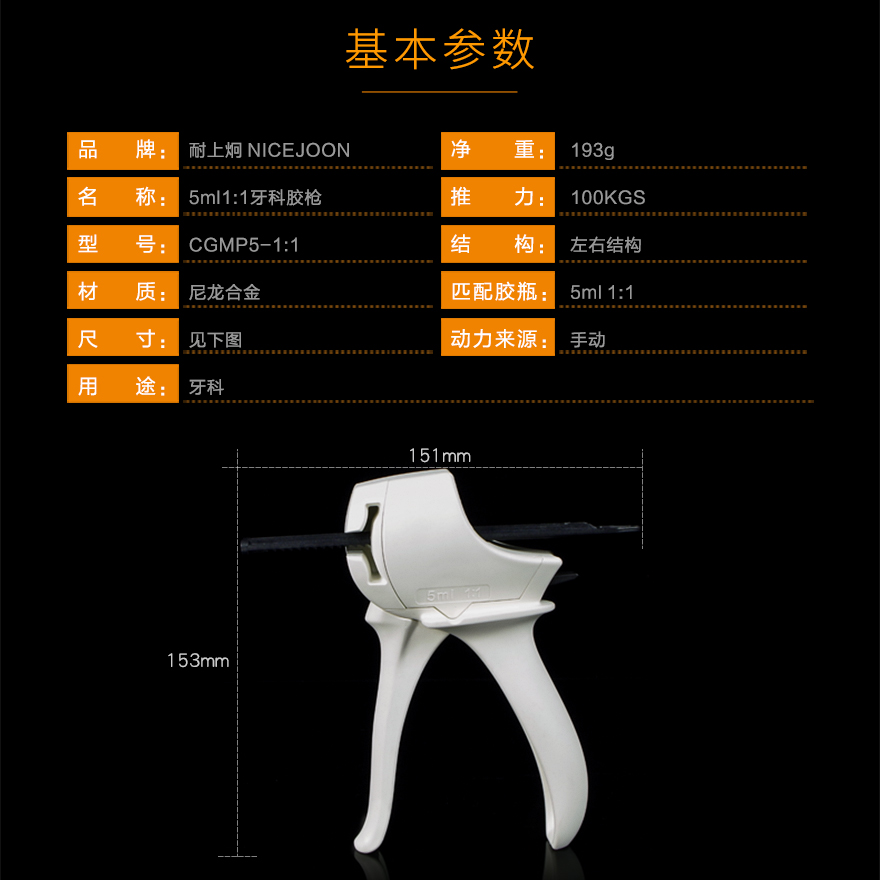 5ml10:1双组份牙科手动胶枪