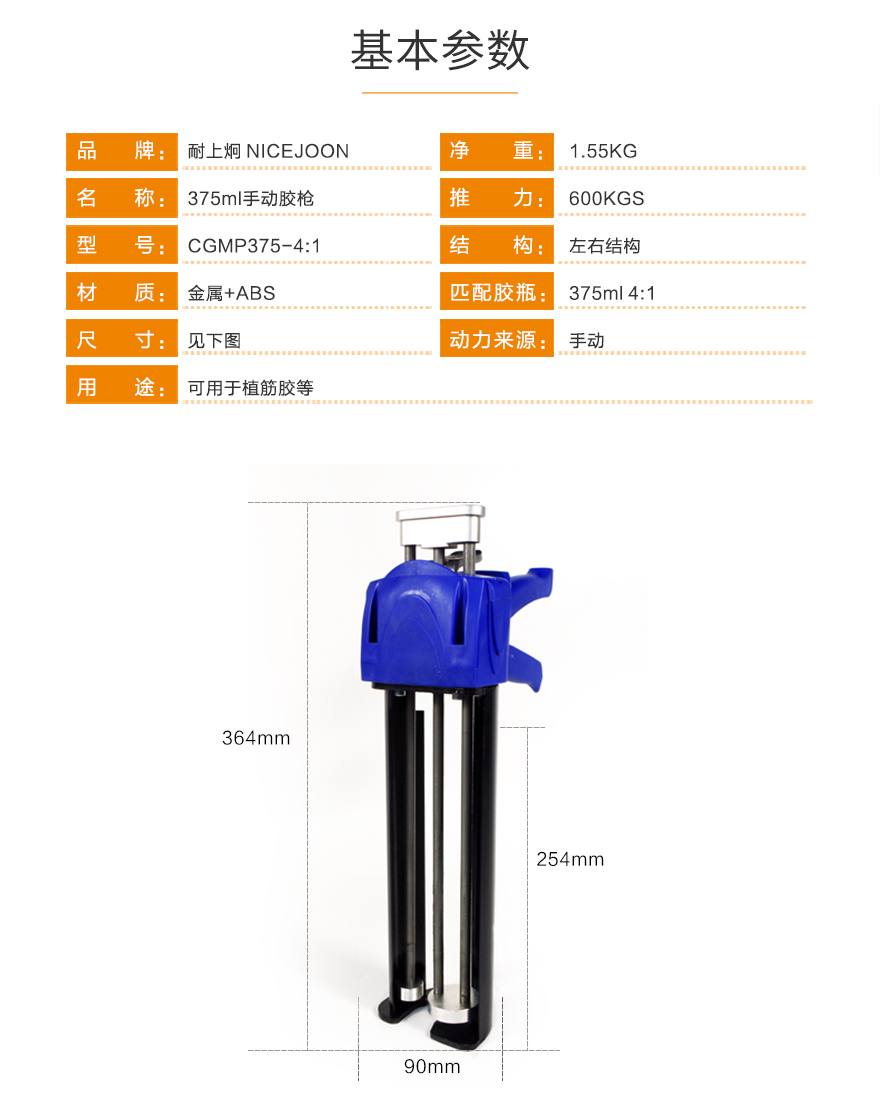 产品型号:375ml4:1手动胶枪