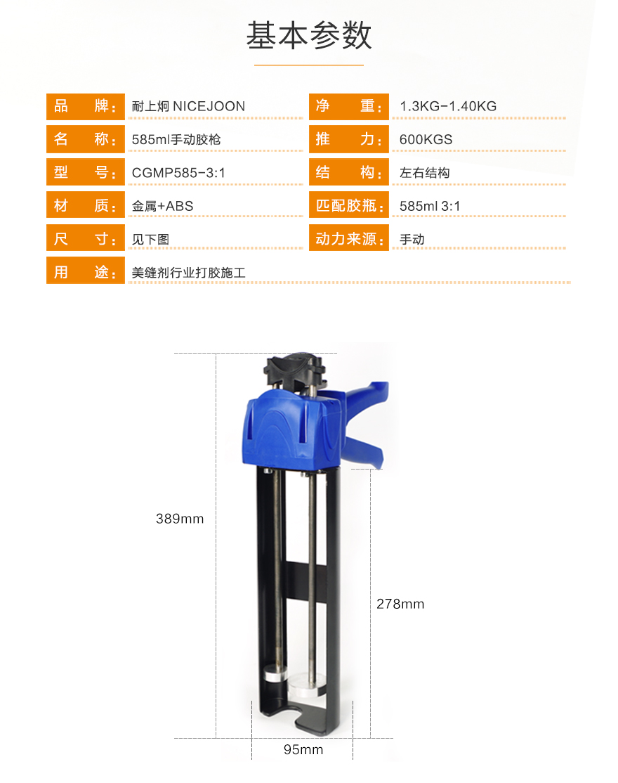 产品型号:585ml3:1手动胶枪