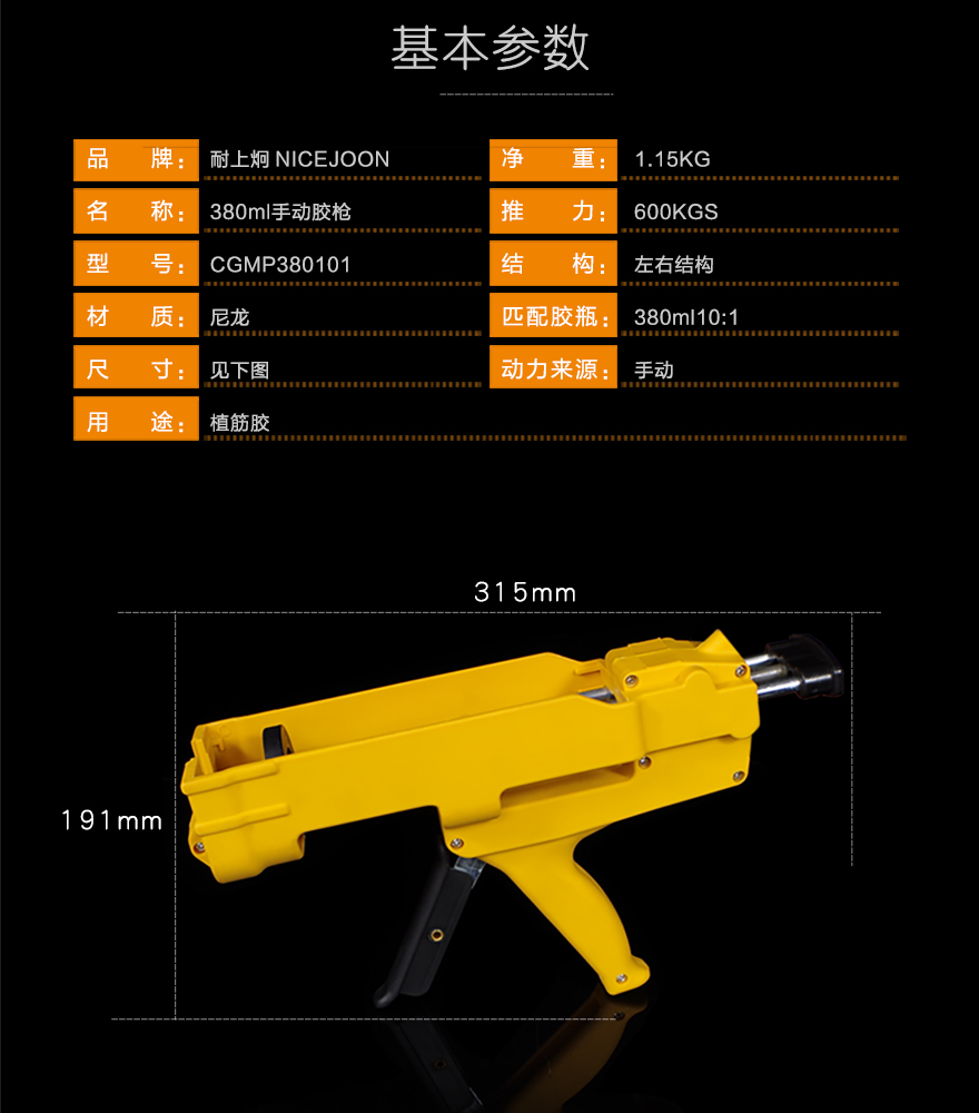 产品型号:380ml10:1手动胶枪