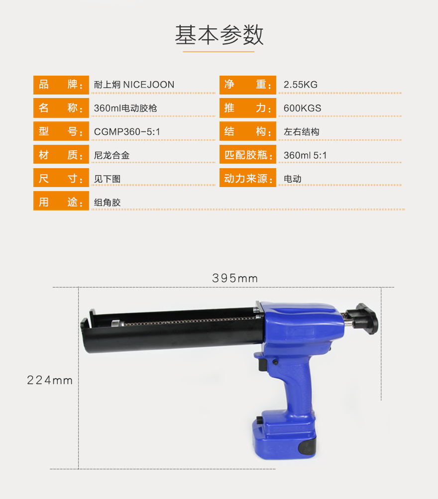 产品型号:360ml5:1电动胶枪