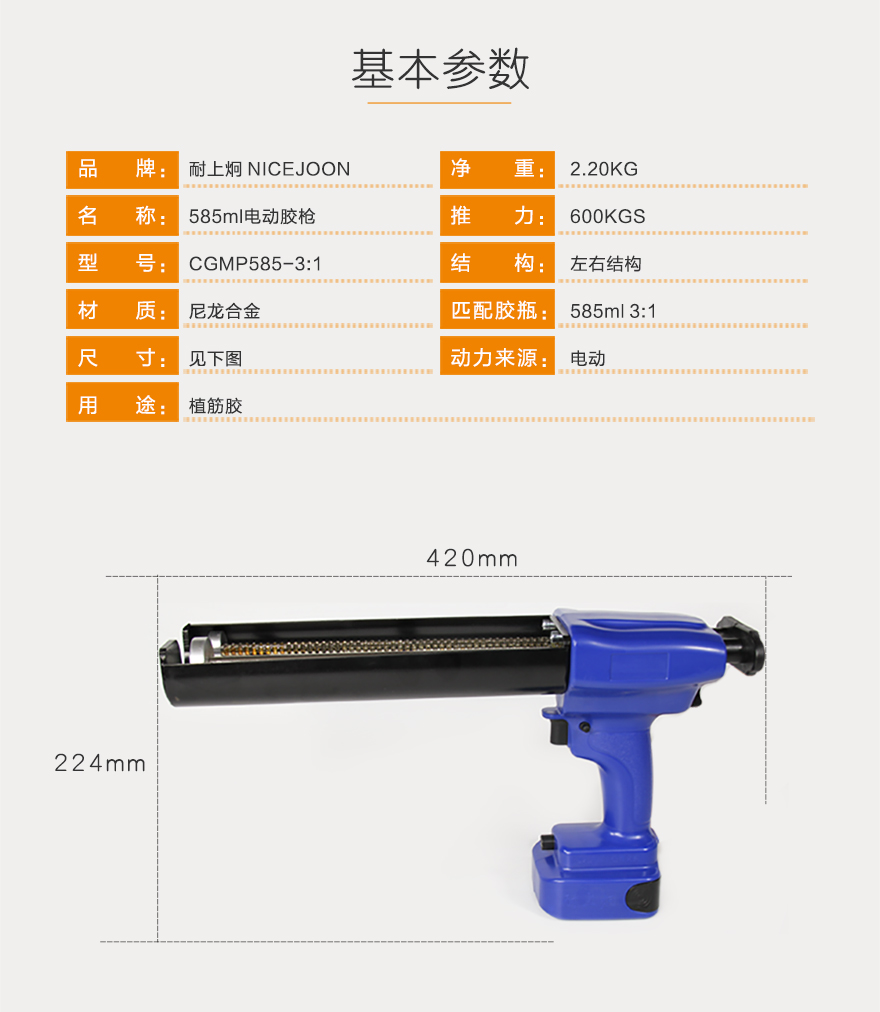产品型号:585ml3:1电动胶枪